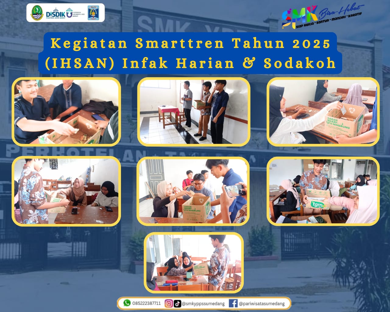 Siswa/siswi dan Guru SMK YPPS Sumedang melakukan infaq harian ke setiap kelas. Dana yang terkumpul akan diberikan kepada panti asuhan.